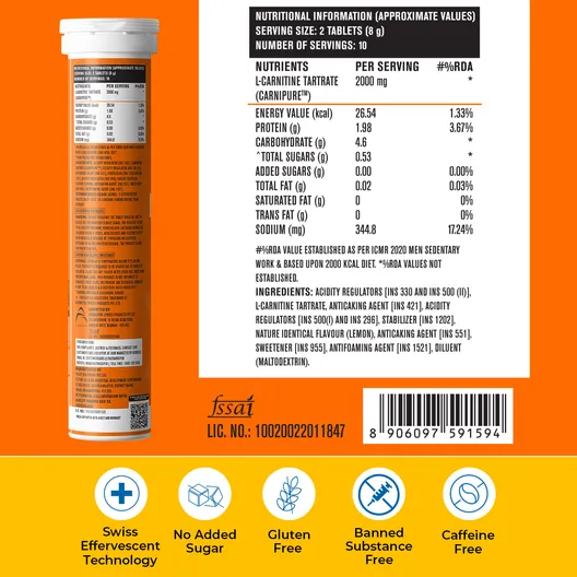 • Effervescent Fast&Up L-carnitine promotes fatty acid metabolism & transports it to the muscles where it is burned.
